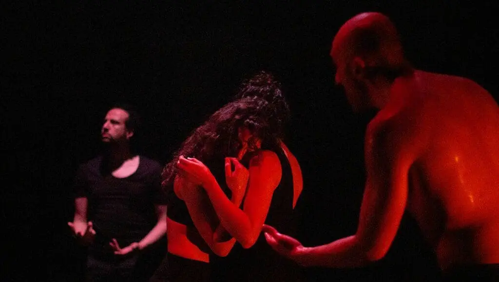 Dans une scène inaugurale, les cinq acteurs (Sofiane Bennani, Julien Breda, Hayet Darwich, Hnia El Amrani, Hédi Tillette de Clermont-Tonnerre, très convaincants) déplient ensemble une grande bâche noire sur le plateau. De la matière de celle qui peut envelopper les cadavres. Sur ce tapis quasi mortuaire, les protagonistes se livrent à un rituel de purification. Les hommes, torse nu, plongent leurs bras dans des bassines en cuivre remplies d’eau et réalisent leurs ablutions. Une femme, comme un thuriféraire, fait osciller de l’encens vers le public ou autour du corps d’une autre femme.