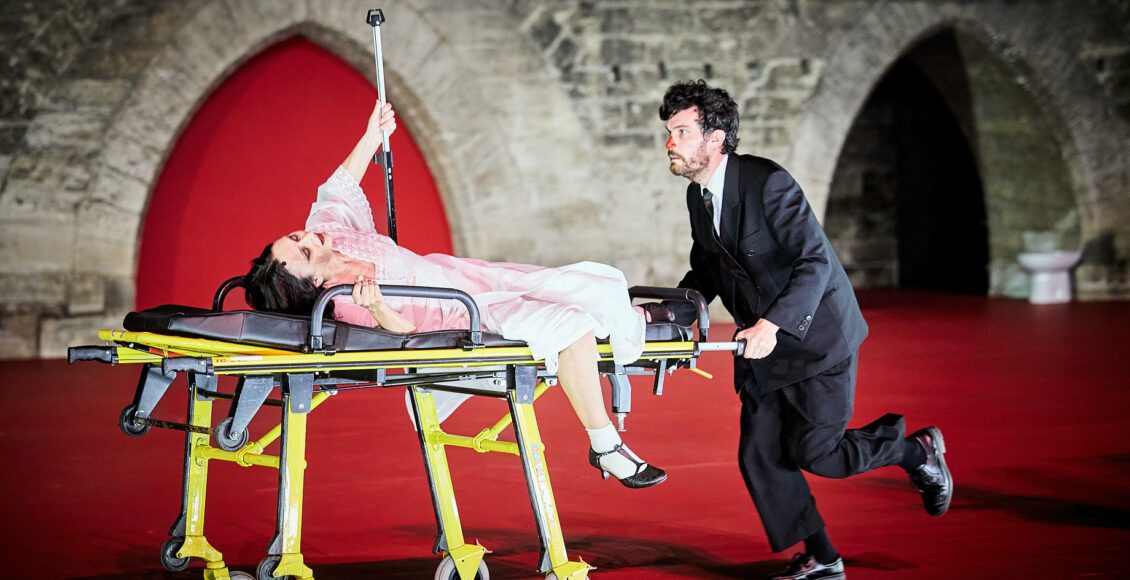 Dämon, le titre du spectacle d’Angélica Liddell peut alors s’afficher sur les pierres de la Cour d’Honneur : « Démon » en suédois. Nom à la fois de tout démon intérieur comme celui de l’ange (Angélica ? ) qui se révolte contre Dieu. Celui-ci est accolé à celui d’Ingmar Bergman dont le Carnet de travail a été une source d’inspiration. Cinéaste, auquel il s’agit aussi de rendre hommage, en organisant ses funérailles lors du spectacle, comme l’indique le sous-titre El funeral de Bergman.