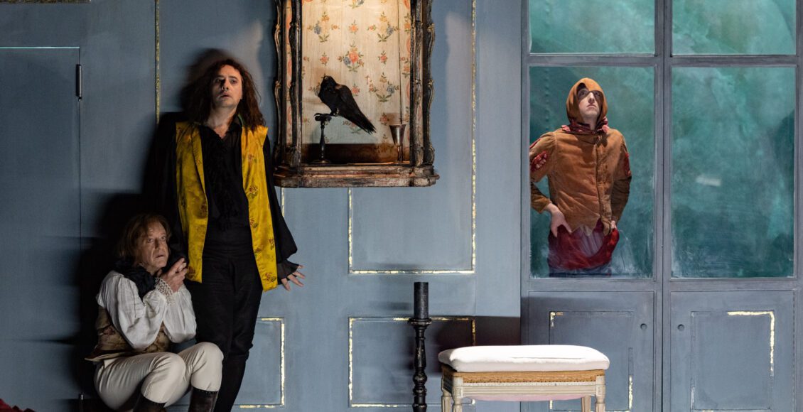 Dès les premiers instants, un élément du décor questionne. Il s’agit d’un corbeau. Mis en évidence dans un présentoir puissamment éclairé, il trône au milieu d’un mur central. L’oiseau attire le regard, sans qu’on en comprenne tout de suite l’importance. Pourtant, très vite, le corbeau empaillé se lit comme une métaphore de Dom Juan. Dans la mise en scène de Macha Makeïeff, le héros éponyme de la pièce de Molière, semble enfermé dans une cage. La sienne.