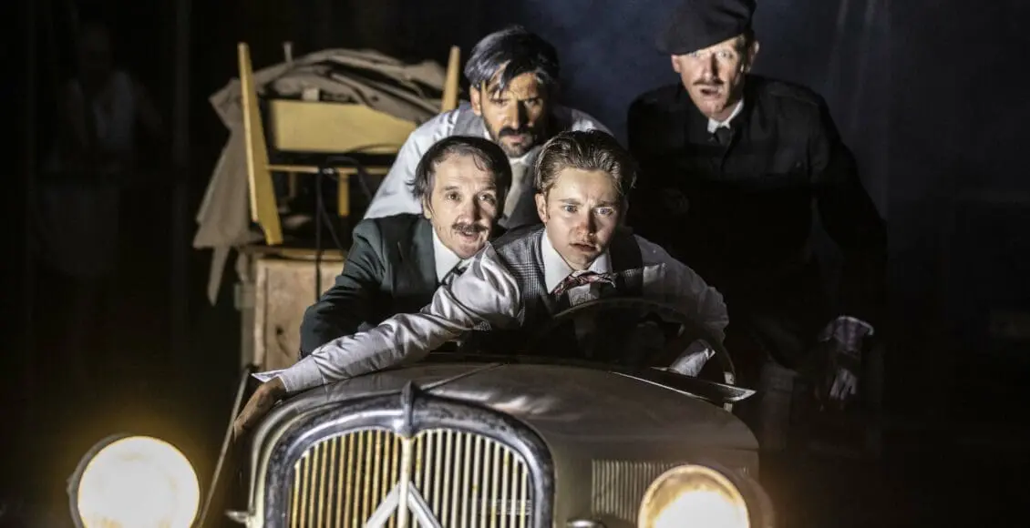 Sylvain Creuzevault a donc utilisé un matériau historique pour élaborer cette plongée dans les eaux nauséabondes où le fascisme en France s’affiche dans les mots et dans les actes. Pour brasser ces années marquées par la barbarie et balayer l’évolution des prises de position de chacun des protagonistes, le metteur en scène choisit d’ouvrir ou de fermer un rideau transparent sur chacune des scènes. Autant d’épisodes qui s’apparentent à des saynètes. Les personnages, souvent face public, apparaissent alors comme des pantins mus par la haine et la folie.