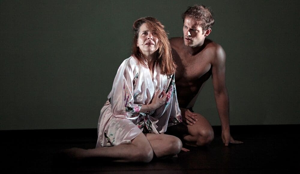 Le mouvement œuvre à offrir une autre perception des corps. Entre élan et retenue, entre désir et contrainte, Georges Lavaudant dit avoir traité les personnages comme « des figures, des images dont on a l’impression qu’elles ne peuvent jamais totalement s’abandonner » . Au seuil « de la sensualité, du dévergondage » , il a « retenu les chevaux pour que tout-à-coup, ce soit à nouveau la parole qui prenne le dessus. » Le jeu d’Astrid Bas (Phèdre) face à Maxime Taffanel (Hippolyte) éclaire parfaitement cette tension entre l’impulsion vers l’autre et le refoulement de la passion. Les corps sont au plus près, mais, Phèdre sur le fil, au bord du précipice, sait qu’un geste de trop vers celui qu’elle aime, pourrait rompre cette intime proximité. Tant que l’aveu n’a pas été encore prononcé, tout pourrait être possible.