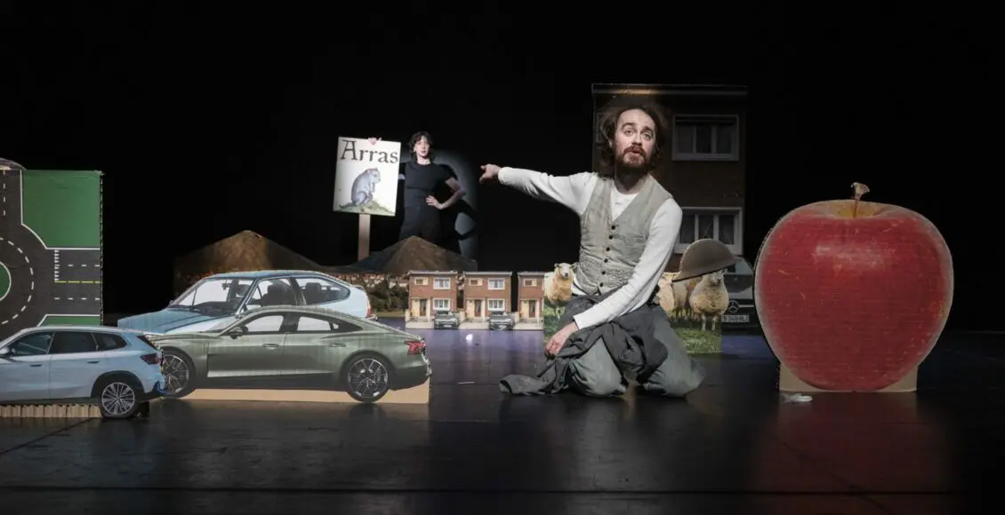 Présenté dans le cadre de L’Envolée, ce laboratoire de la jeune création porté par le Théâtre des Amandiers, Veiller sur le sommeil des villes s’inscrit pleinement dans une dynamique d’expérimentation et d’invention. Écrit et mis en scène par Louis Albertosi, le spectacle puise dans une expérience personnelle, une traversée du Nord-Pas-de-Calais en 2020, en pleine pandémie. Lille, Berck, Vimy, Arras, autant de villes qui dressent les contours de ce récit initiatique à rebours des attentes. Le protagoniste se rêve d’abord en ange secourable, à la manière de Damiel dans Les Ailes du désir, le film de Wim Wenders. Mais, confronté à un monde déserté, le regard se déplace. L’absence et la quête du lien deviennent la matière première du voyage.
