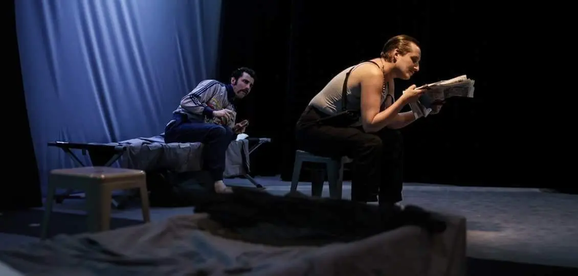 M La Scène avait pu apprécier le jeu d’Etienne Launay, justement récompensé par le prix d’interprétation du Festival d’Anjou en 2017 pour son rôle d’Arlequin dans Le Jeu de l’Amour et du Hasard, monté par Salomé Villiers. Sa mise en scène de la pièce de Pinter, Le Monte-plats, convainc et séduit.