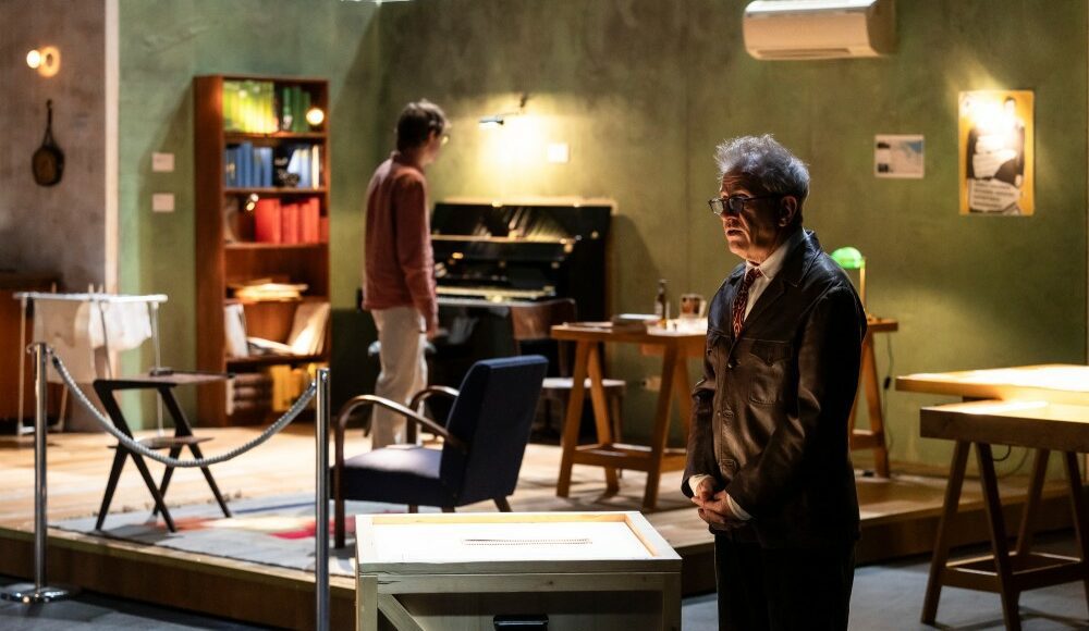La falsification du réel s’organise dans la scénographie même. L’appartement du musicien, appelé « Luca Misiti » occupe la moitié du plateau. Placé sur une estrade, le lieu s’affiche avec évidence. Chaque détail semble exact, confirmé par des photos retrouvées et projetées en direct sur un écran par une petite caméra. Le public est même amené à devenir un témoin de cette fausse réalité lorsque Marcial Di Fonzo Bo confie à quelques spectateurs ces photographies.
