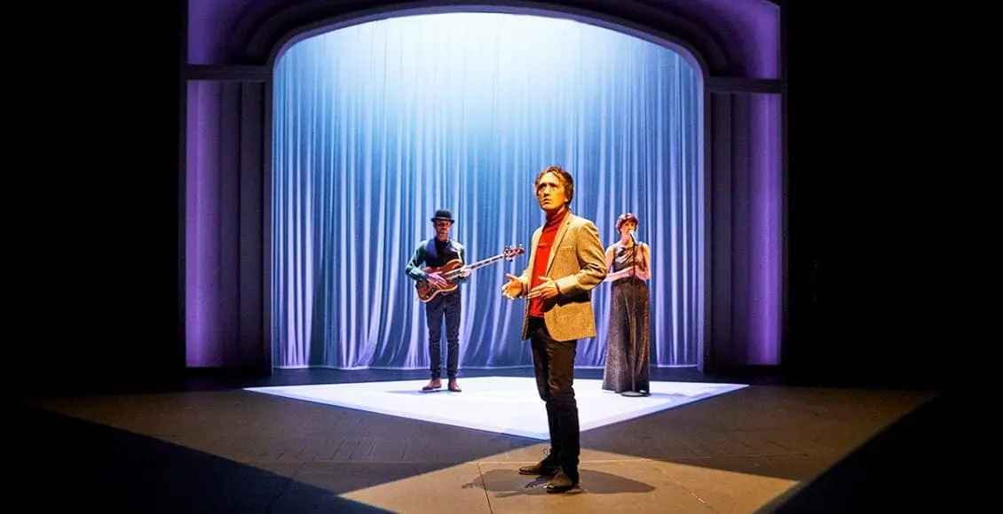 La mise en scène de Sylvain Maurice, ciselée au plus haut point, se déploie dans un écrin scénographique. Une grande arche Art Déco structure fortement l’espace. Un rideau de plastique souple, manié à vue, ouvre ou ferme le lointain. Il sert également de toile pour les projections franches ou irisées qui accompagnent les « stories ». Les très belles lumières de Rodolphe Martin dessinent également la géométrie spatiale où l’action prend place. L’adresse publique et le jeu volontairement frontal rendent cette adaptation théâtrale vigoureuse et intime.